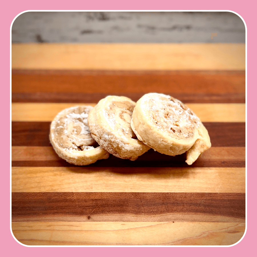 Tender buttery dough surrounds a sweet and nutty filling. Allegens: contains wheat, eggs, dairy